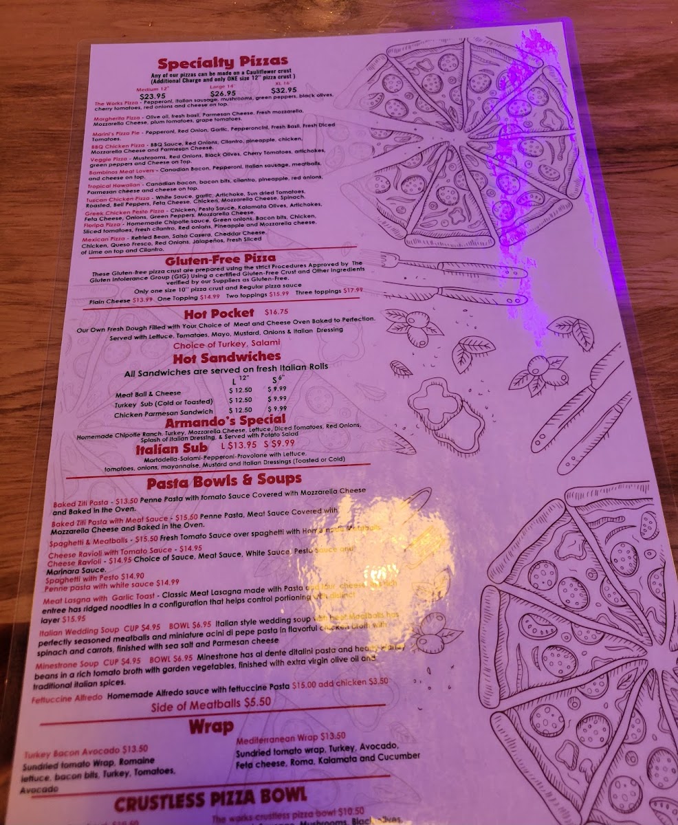 Comes with regular pizza sauce and mozzarella cheese. Any of our pizzas can be made on a Cauliflower crust (Additional Charge and only ONE size 12'' pizza crust ).